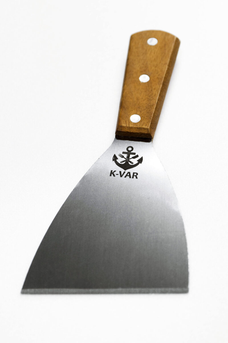 Ova kvalitetna lopatica izrađena je od snažnog nehrđajućeg čelika koji učinkovito uklanja zagorjelu masnoću, ostatke hrane i prljavštinu s površina roštilja. Široki rub omogućuje temeljito čišćenje većih površina, dok ergonomski oblikovana drvena drška pruža dobar hvat i udobnost pri korištenju, čak i pri visokim temperaturama. Zahvaljujući izdržljivoj konstrukciji i materijalima otpornima na koroziju, idealna je za korištenje na brodu, u kampu ili kućnoj kuhinji.